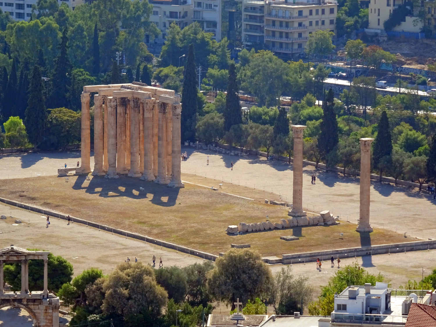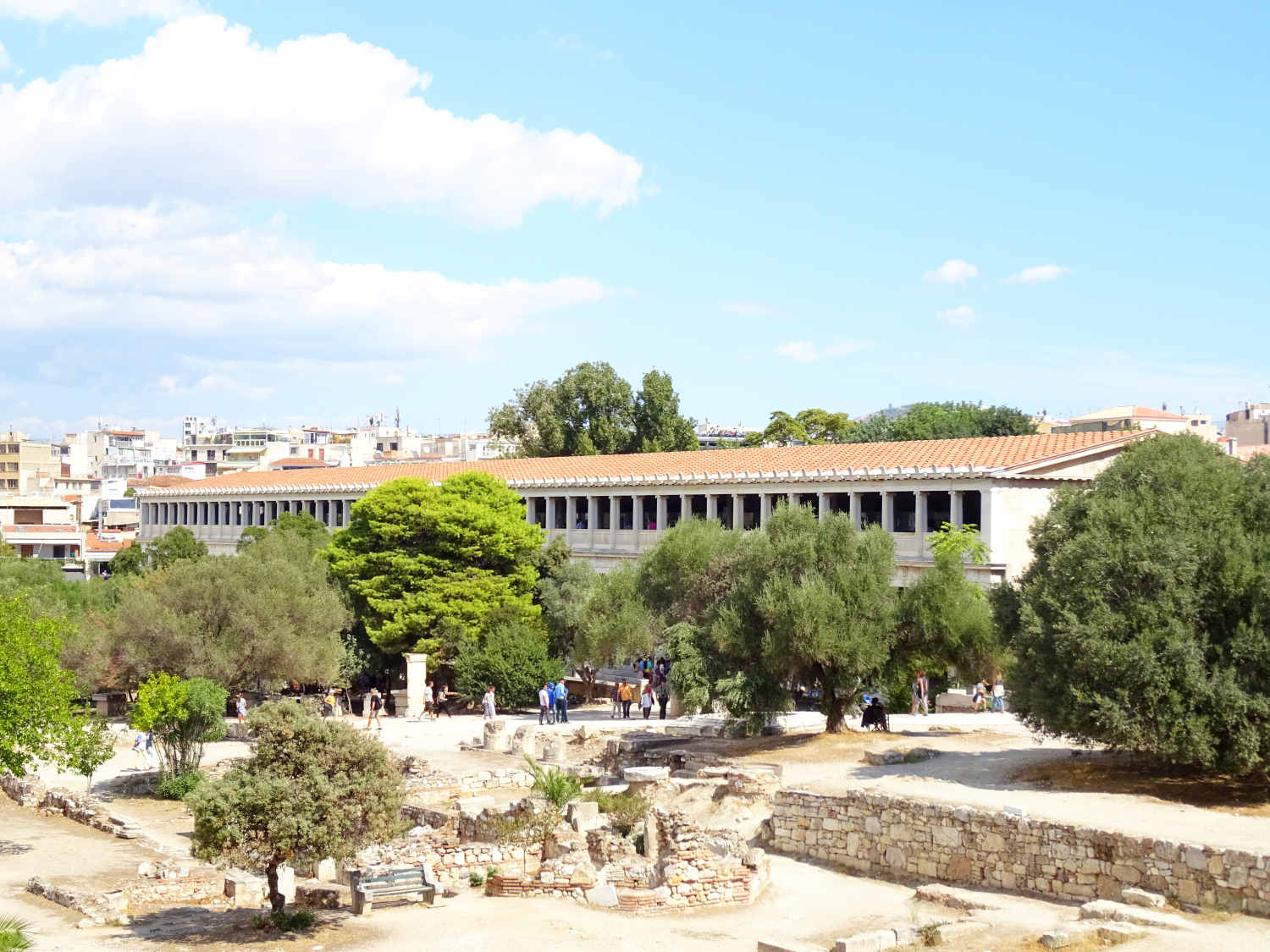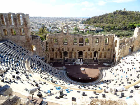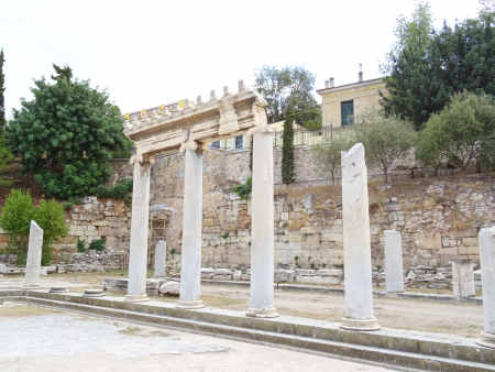 Spätestens seit 146 v. Chr. stand die Stadt, die schon seit 229 v. Chr. als "Freund" Roms galt, wie das restliche Griechenland faktisch unter römischer Herrschaft. Da man die Römer früh unterstützt hatte, wurde Athen zunächst gefördert und erlebte um 100 v. Chr. eine ökonomische Blüte. Das Blatt wendete sich, als die Athener 88 v. Chr. unter der Tyrannis des Aristion beschlossen, König Mithridates VI. gegen Rom zu unterstützen: Im Jahre 86 v. Chr. kam es zur Eroberung Athens durch die Truppen des römischen Feldherrn Sulla und zur gründlichen Plünderung des Ortes, der aber seinen Ruf als intellektuelles Zentrum sowie den Status als "freie Stadt" behielt und sich bald erholte. Reiche Römer agierten als Wohltäter der Stadt, und die Kaiser folgten ihrem Beispiel: Schon während der Herrschaft des ersten Kaisers Augustus entstand die Römische Agora. Kaiser Hadrian (117 bis 138 n. Chr.) hielt sich dann mehrfach in Athen auf. Der Philhellene und Kunstliebhaber stiftete Athen mehrere große Bauwerke: Er ließ die Hadriansstadt (heute ist vor allem noch das Hadrianstor erhalten) und die Hadriansbibliothek bauen sowie den gewaltigen, schon in archaischer Zeit begonnenen Tempel des Olympischen Zeus (das Olympieion) vollenden. In römischer Zeit entstand auch das Theater des Herodes Atticus am Fuß der Akropolis. Die Stadt erreichte nun den Höhepunkt ihrer urbanen Entwicklung.
