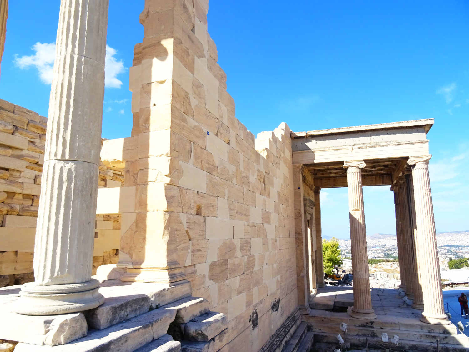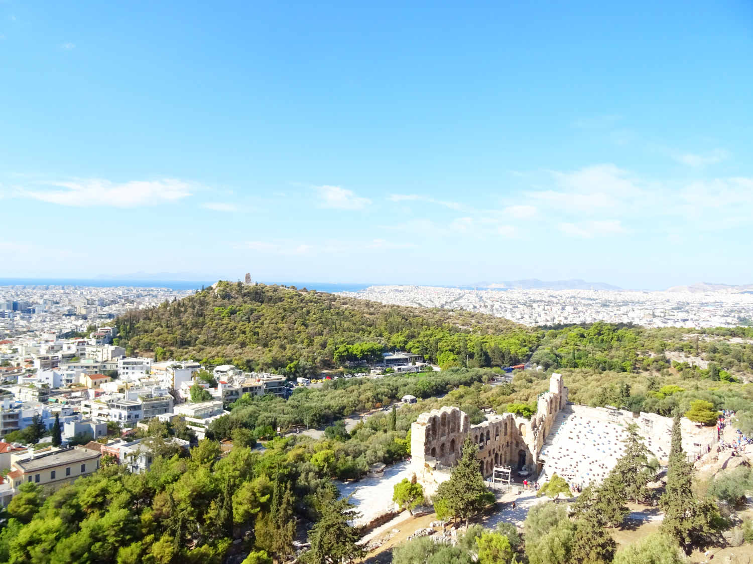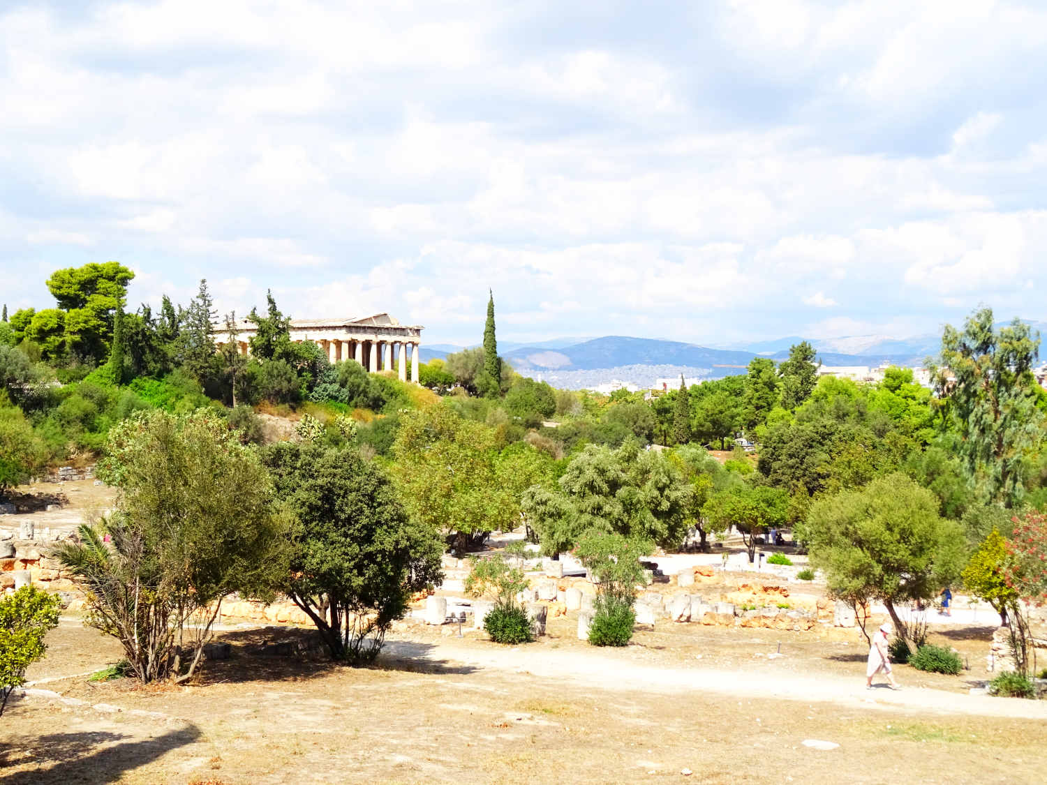 Spätestens seit 146 v. Chr. stand die Stadt, die schon seit 229 v. Chr. als "Freund" Roms galt, wie das restliche Griechenland faktisch unter römischer Herrschaft. Da man die Römer früh unterstützt hatte, wurde Athen zunächst gefördert und erlebte um 100 v. Chr. eine ökonomische Blüte. Das Blatt wendete sich, als die Athener 88 v. Chr. unter der Tyrannis des Aristion beschlossen, König Mithridates VI. gegen Rom zu unterstützen: Im Jahre 86 v. Chr. kam es zur Eroberung Athens durch die Truppen des römischen Feldherrn Sulla und zur gründlichen Plünderung des Ortes, der aber seinen Ruf als intellektuelles Zentrum sowie den Status als "freie Stadt" behielt und sich bald erholte. Reiche Römer agierten als Wohltäter der Stadt, und die Kaiser folgten ihrem Beispiel: Schon während der Herrschaft des ersten Kaisers Augustus entstand die Römische Agora. Kaiser Hadrian (117 bis 138 n. Chr.) hielt sich dann mehrfach in Athen auf. Der Philhellene und Kunstliebhaber stiftete Athen mehrere große Bauwerke: Er ließ die Hadriansstadt (heute ist vor allem noch das Hadrianstor erhalten) und die Hadriansbibliothek bauen sowie den gewaltigen, schon in archaischer Zeit begonnenen Tempel des Olympischen Zeus (das Olympieion) vollenden. In römischer Zeit entstand auch das Theater des Herodes Atticus am Fuß der Akropolis. Die Stadt erreichte nun den Höhepunkt ihrer urbanen Entwicklung.