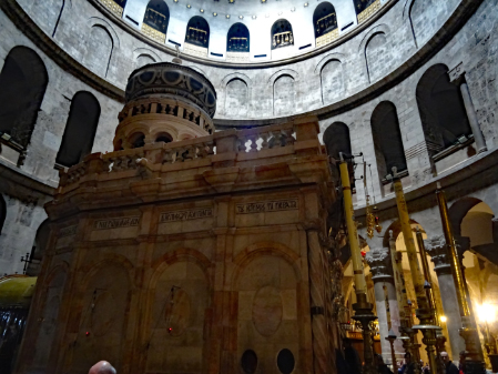 In den 1020er und 1030er Jahren wurde die fatimidische Herrschaft in Palästina und Syrien durch Aufstände beduinischer Stammesverbände und ein erstarkendes Byzantinisches Reich unter Kaiser Basileios II. bedroht. Nach der erfolglosen Belagerung Jerusalems durch ein Heer der Oströmer im Jahre 1030 ließ der fatimidische Kalif die Stadt mit einer Mauer schützen, zu deren Bau auch das Material abgerissener Kirchen und Klöster verwendet wurde. Anschließend kam es zu einer Phase intensiver Kontakte und Verhandlungen zwischen Kairo und Byzanz, in deren Verlauf der Kalif az-Zahir (1021-1036) 19 Jahre nach der Zerstörung der Grabeskirche deren Wiederaufbau durch griechische Architekten gestattete und die Auflagen für die Nichtmuslime lockerte.
