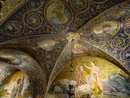Nachdem Kaiserin Helena im Heiligen Land Grabungen veranlasst hatte, ließen sie und ihr Sohn Konstantin am Ort der vermuteten Kreuzauffindung die Grabeskirche erbauen. Nach der Reichsteilung von 395 fiel Jerusalem an das Oströmische Reich. Die Stadt durchlebte unter oströmischer ("byzantinischer") Herrschaft eine anhaltende Friedensperiode, so dass der Übergang von der Spätantike zum Mittelalter sehr viel bruchloser verlief als im lateinischen Europa. Der Sassaniden-Herrscher Chosrau II. drang um 613 während des Römisch-Persischen Kriegs (602-628) nach Palästina vor. Die palästinischen Juden begrüßten die Sassaniden als Befreier und vollzogen einen Aufstand gegen Byzanz. Im Juli 614 eroberten die Sassaniden Jerusalem nach 21-tägiger Belagerung mit Hilfe jüdischer Verbündeter. Laut Theophanes sollen die Juden dabei bis zu 90.000 christlichen Stadtbewohnern ermordet haben. 629 fiel Jerusalem nach dem Sieg des oströmischen Kaisers Herakleios an Byzanz zurück. Dabei kam es trotz kaiserlicher Versprechen zu neuen Massakern, diesmal von Griechen an Juden.