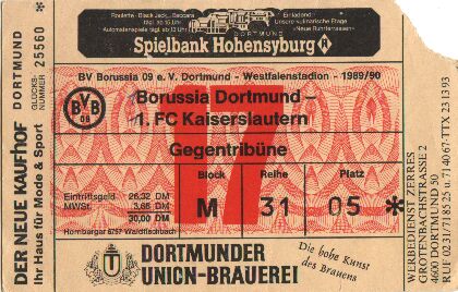 Borussia Dortmund - 1. FC Kaiserslautern 1:1 1. Bundesliga, 33. SP, Saison 1989/90, 05.05.1990 |