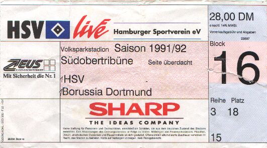 Hamburger SV - Borussia Dortmund 1:1 1. Bundesliga, 29. Spieltag, Saison 1991/92, 20.03.1992 |