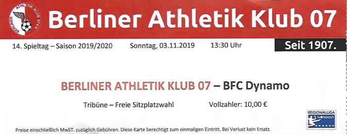 Berliner AK - BFC Dynamo 0:2 Regionalliga Nordost, 14. Spieltag, Saison 2019/20, 03.11.2019 |