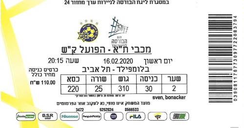 Maccabi Tel-Aviv - Ironi Kiryat Shmona 3:0 Liga HaAl, 24. Spieltag, Saison 2019/20, 16.02.2020 |