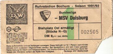 VFL Bochum - MSV Duisburg 2:1 1. Bundesliga, 31. Spieltag, Saison 1991/92, 03.04.1992 |