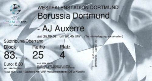 Borussia Dortmund - AJ Auxerre 2:1 Champions League, Vorrunde 2. Speiltag, Saison 2002/03, 25.09.2002 |