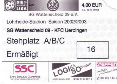 SG Wattenscheid 09 - KFC Uerdingen 0:1 Regionalliga Nord, 31. Spieltag Saison 2002/03, 17.05.2003 |