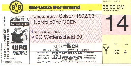 Borussia Dortmund - SG Wattenscheid 09 6:0 1. Bundesliga, 26. Spieltag, Saison 1992/93, 16.04.1993 |