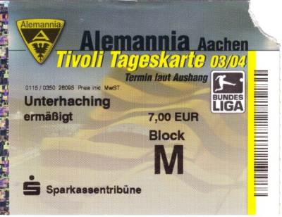 Alemannia Aachen - SpVgg Unterhaching 5:1 2. Bundesliga, 8. Spieltag, Saison 2003/04, 06.10.2003 |