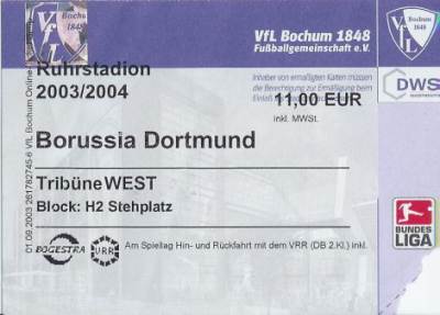 VFL Bochum - Borussia Dortmund 3:0 Bundesliga, 10. Spieltag, Saison 2003/04, 26.10.2003 |