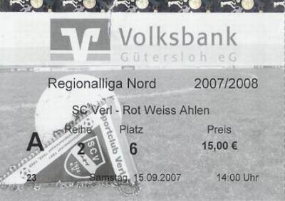 SC Verl - Rot Weiss Ahlen 2:2 Regionalliga Nord, 9. Spieltag, Saison 2007/08, 15.09.2007 |