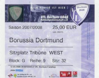 VFL Bochum - Borussia Dortmund 3:3 Bundesliga, 26. Spieltag, Saison 2007/08, 30.03.2008 |