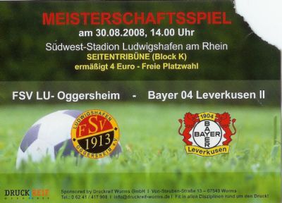 FSV LU Oggersheim - Bayer Leverkusen II 3:0 Regionalliga West, 3. Spieltag, Saison 2008/09, 29.08.2008 |