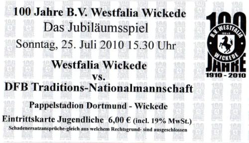 Westfalia Wickede - DFB Traditionsmannschaft 6:7 Jubiläumsspiel, Saison 2010/11, 25.07.2010, 15.30h |
