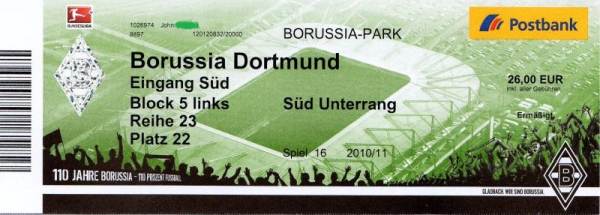 Borussia Mönchengladbach - Borussia Dortmund 1:0 Bundesliga, 31. Spieltag, Saison 2009/10, 23.04.2011 |