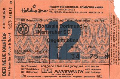 Borussia Dortmund - Karlsruher SC 1:0 1. Bundesliga, 20. Spieltag, Saison 1991/92, 29.11.1991 |