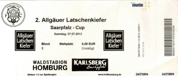 FC Homburg - 1. FC Kaiserlsautern 0:0 Allgäuer Latschenkiefer Saar-Pfalz-Cup, Saison 2012/13, 07.07.2012, 14.00 Uhr (Spiellänge 45 Min.) |
