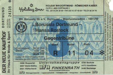 Borussia Dortmund - Hansa Rostock 4:1 1. Bundesliga, 22. Spieltag, Saison 1991/92, 13.12.1991 |