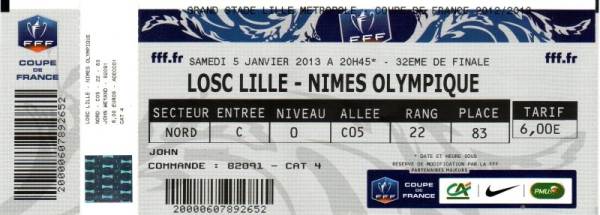 LOSC Lille - Nimes Olympique 3:2 Coupe de France, 9. Runde, Saison 2012/13, 05.01.2013, 20.45 Uhr |