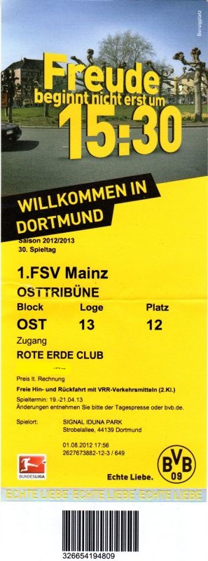Borussia Dortmund - FSV Mainz 05 2:0 Bundesliga, 30. Spieltag, Saison 2012/13, 20.04.2013 |