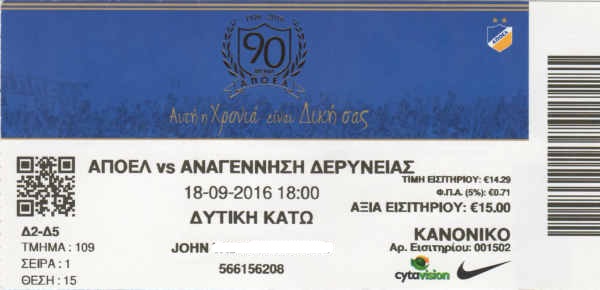 APOEL Nikosia - Anagennisi Derynia 2:0 1. Division, 4. Spieltag, Saison 2016/17, 18.09.2016 |