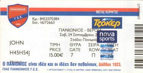PAE Panionios GSS - Veria FC 1:2 Superleague, 5. Spieltag, Saison 2016/17, 24.09.2016 |