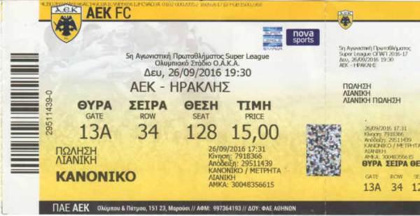 AEK Athen - Iraklis Thessaloniki FC 0:0 Superleague, 5. Spieltag, Saison 2016/17, 26.09.2016 |