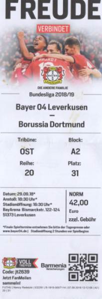 Bayer 04 Leverkusen - Borussia Dortmund 2:4 Bundesliga, 6. Spieltag, Saison 2018/19, 29.09.2018 |